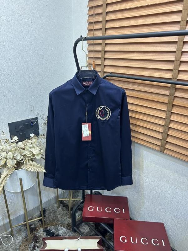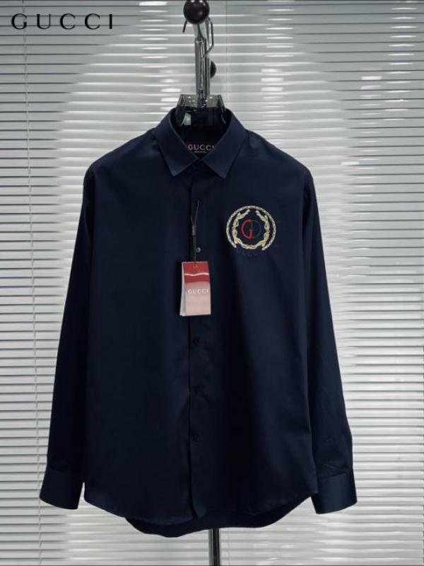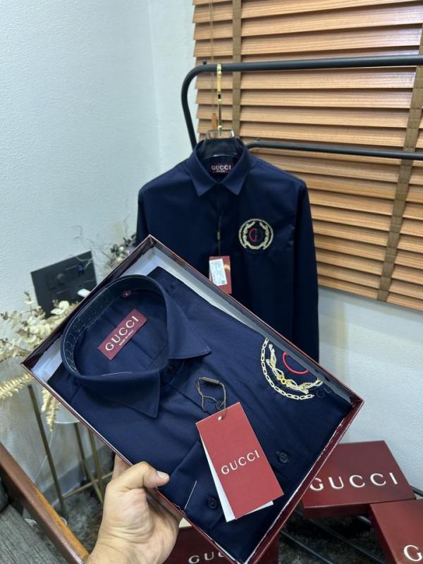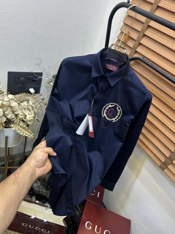 Gucc_i GG Embroidered Navy Blue Imported Very Premium Cotton Partywear Shirt With Og Box And Bag