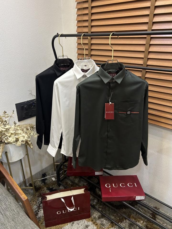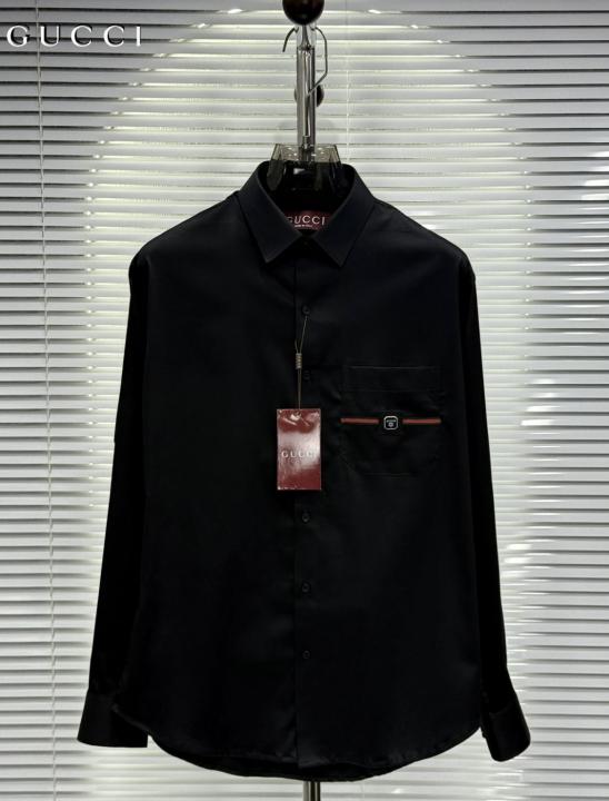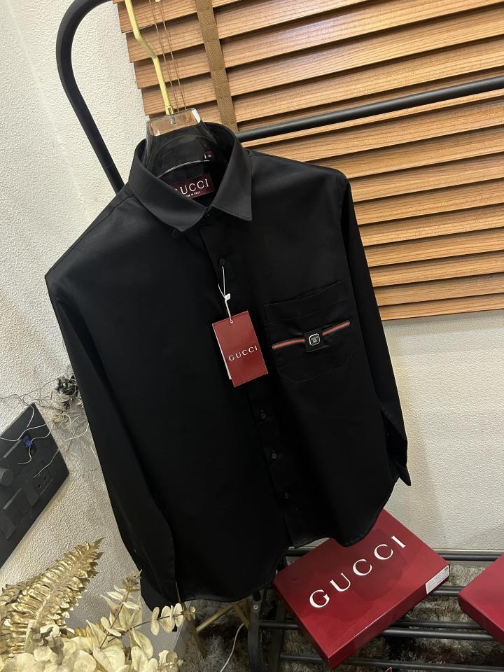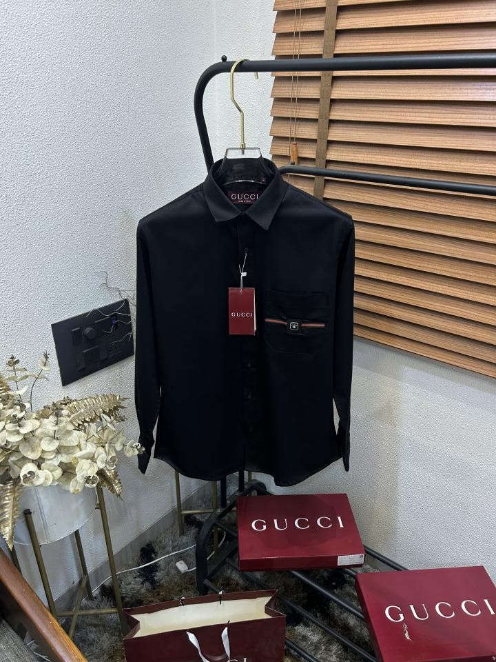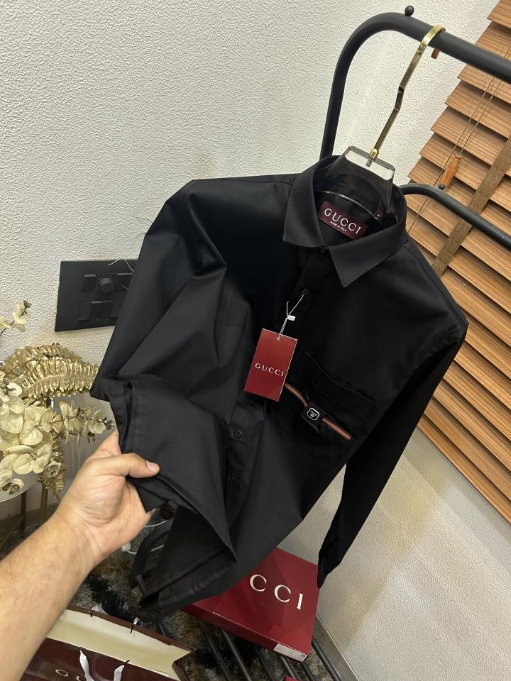 Gucc_i GG Embroidered Black Imported Very Premium Cotton Partywear Shirt With Og Box And Bag