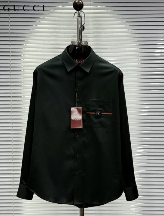 Gucc_i GG Embroidered Black Imported Very Premium Cotton Partywear Shirt With Og Box And Bag