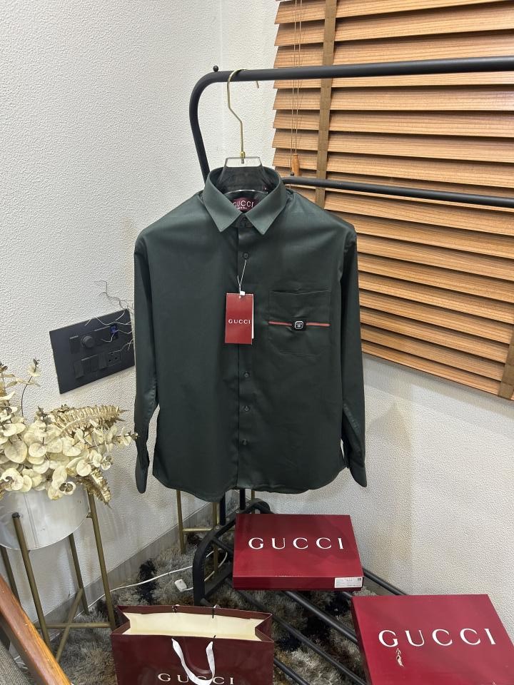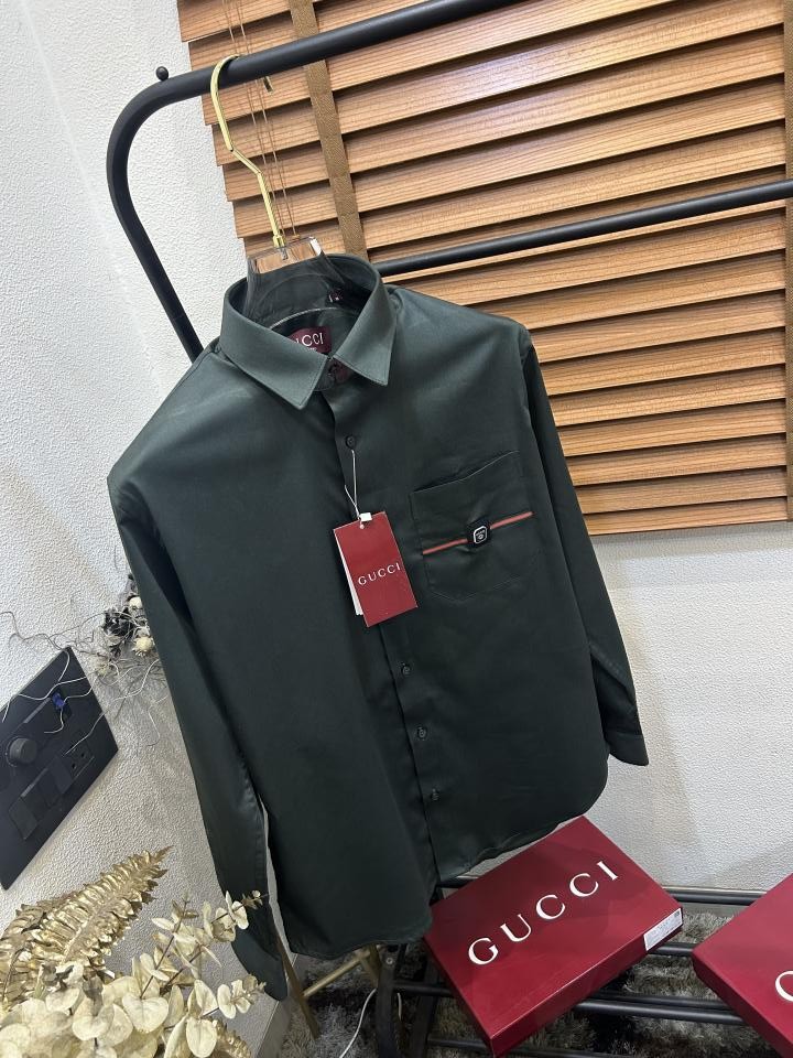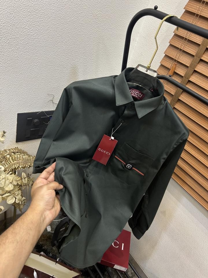 Gucc_i Pocket Signature Patched Imported Partywear Shirt With Og Box & Bag